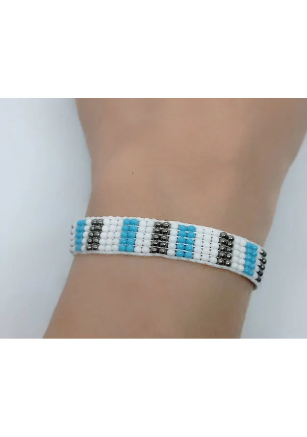 Çok renkli kum boncuklarla el emeğiyle dokunmuş bu bileklik, hem bileklik hem de halhal olarak kullanılabilir. Ayarlanabilir yapısı sayesinde her bilek ölçüsüne rahatlıkla uyar.